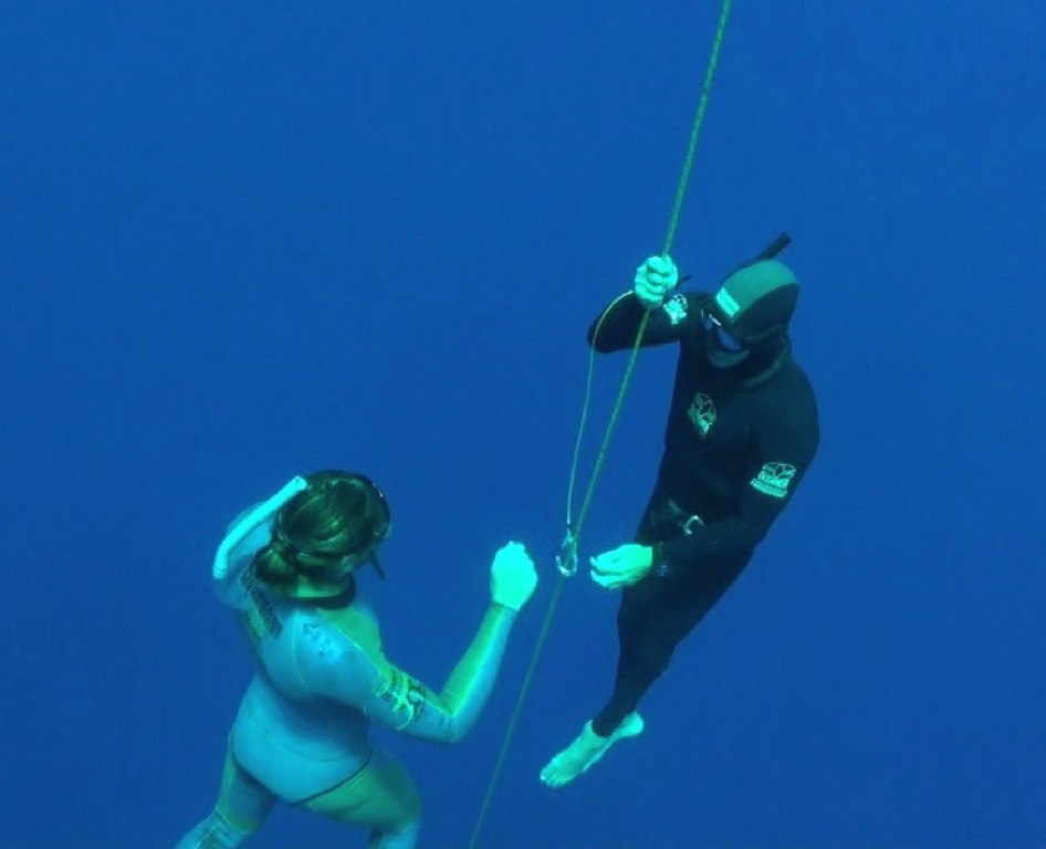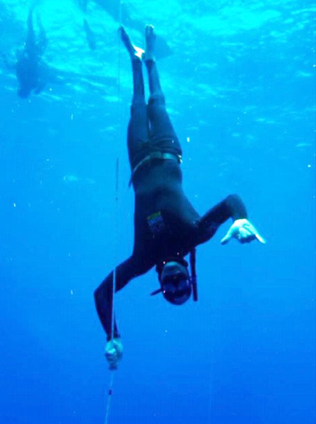 Free Immersion(depth pulling down a line) – 40m (131ft), (Deja Blue II 2011, Grand Cayman)