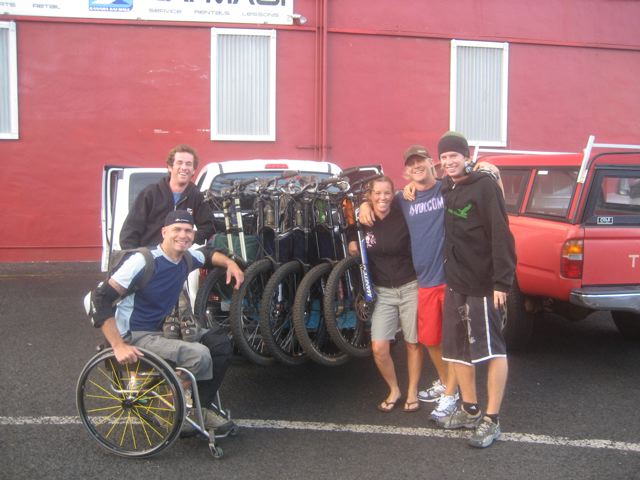 “I said ‘Look, we’re not getting medivac-ed out of here.’ They put a stick and a spare rubber tire around my elbow just to support it. I got back on the bike, rode the rest of the way down, taken to hospital and put in a sling cast. Then we go to a pub the next day and this guy comes up to me and goes ‘You’re the dude! You’re the dude!’ I’m like ‘What are you talking about.’ He’s like ‘I heard all about you, the crazy paralyzed guy who went mountainbiking down Haleakala Crater, broke his arm, got back on the bike and kept riding. You’re awesome!’